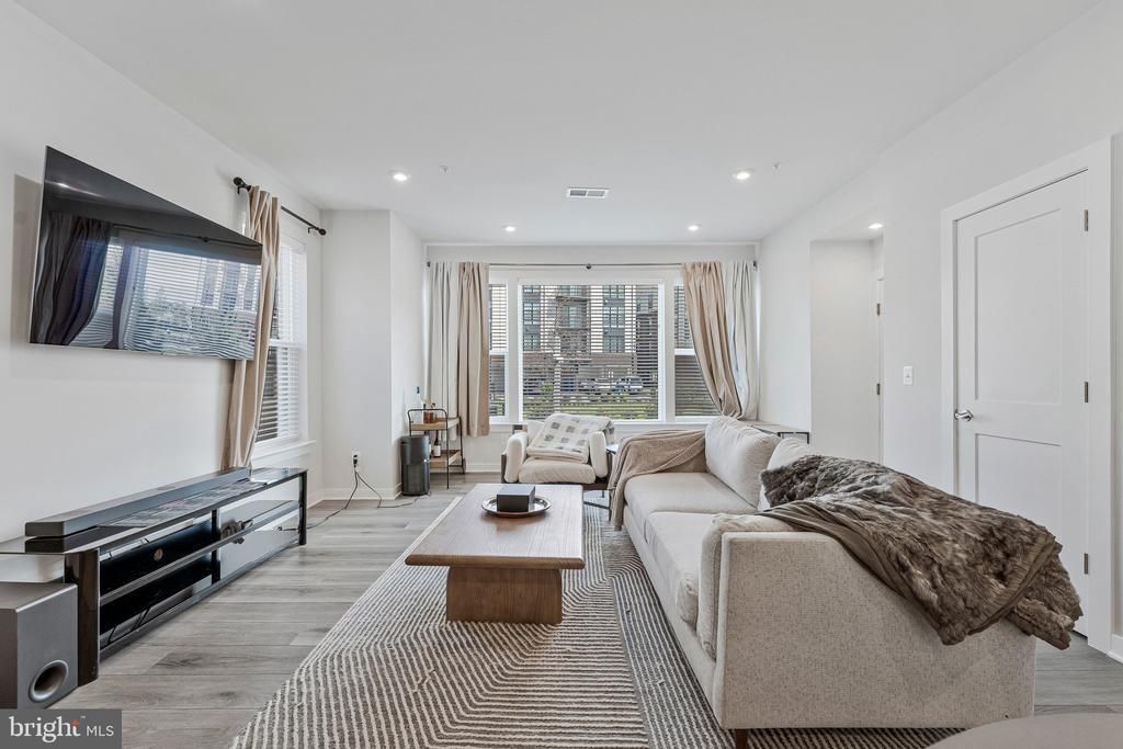 This stunning two-level, end-unit condominium offers modern design and low-maintenance living in the highly sought-after Ashburn Station community. Built in 2023, this home features an open-concept floor plan with abundant natural light and 9-foot ceilings, creating an inviting space for both relaxation and entertaining. The gourmet kitchen, equipped with sleek quartz countertops, serves as a beautiful centerpiece for daily living and gatherings. As an end-unit, this home offers additional privacy and a tranquil environment, making it the perfect retreat. Upstairs, two spacious bedrooms include a primary suite with a spa-inspired bathroom, complete with a soaking tub, separate glass-enclosed shower, and dual vanities. With upper-level laundry and a rear-entry, one-car attached garage offering direct access, this home prioritizes convenience. Ideally located just one mile from the Ashburn Metro Station, it provides easy access to commuting options. The community also boasts scenic walk/jog paths, plus shopping, dining, and entertainment just steps away. For those seeking a blend of contemporary comfort and a prime location, this home is a must-see. Photos may be virtually staged